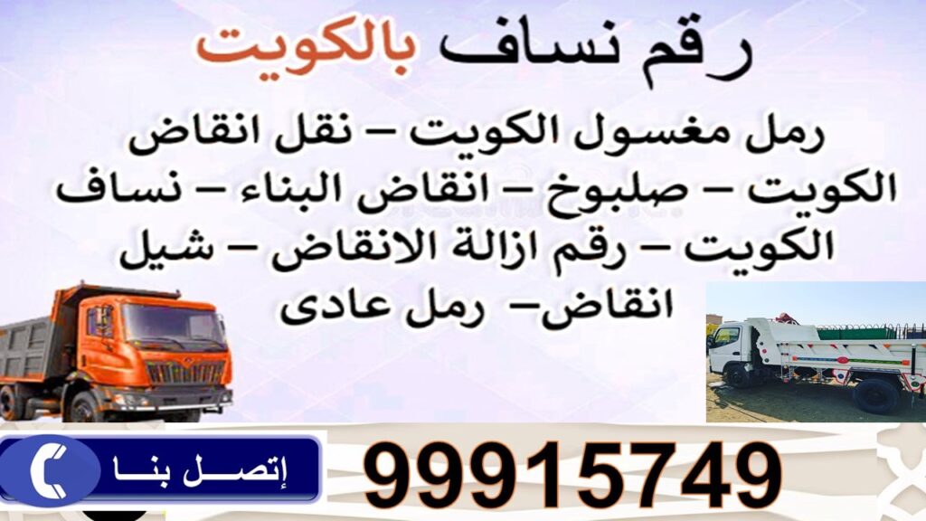 اكتشف قوة نساف كبير لنقل الأنقاض مع شركة الكويت، حيث نضمن لك بيئة نظيفة وآمنة بكل سهولة وكفاءة، كل ما عليك هو الاتصال بنا لتوفير خدمات نقل الأنقاض، وتوريد الرمل والصلبوخ بأسعار تنافسية وجودة لا مثيل لها، وإذا كنت تبحث عن نساف كبير لنقل الأنقاض والرمل، فنحن نوفر لك أفضل النسافات بمختلف الأحجام لتلبية كل احتياجاتك، سواء لتحميل الرمل العادي والمغسول، تركيب البلاط، أو نقل الأنقاض بكفاءة وسرعة.